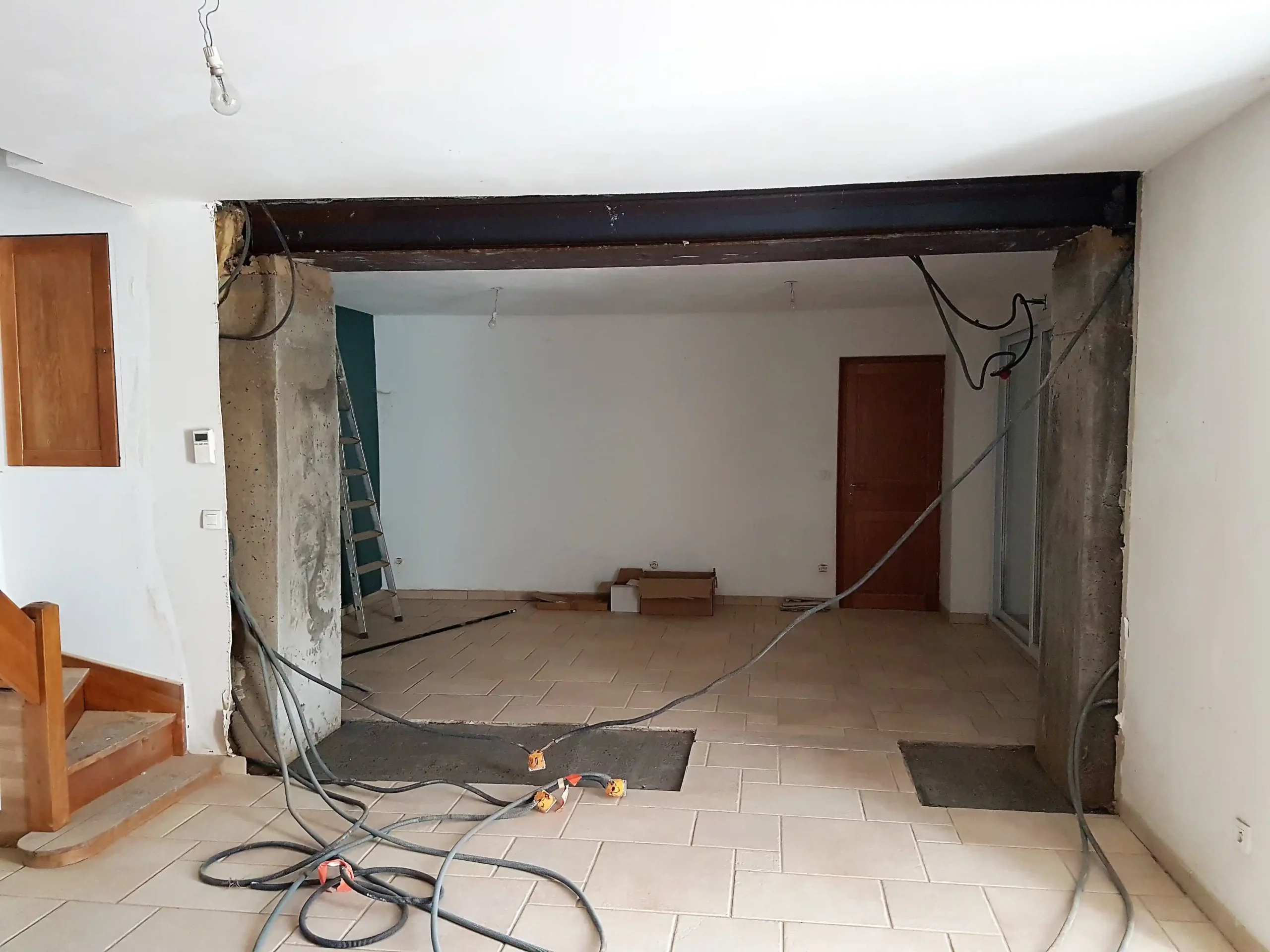Vues avant et après travaux de trois ouverture en sous œuvre réalisées dans une maison d’habitation. Pour chaque création d’ouverture, nous réalisons une étude d’exécution en partenariat avec un bureau d’études : toutes les charges à reprendre sont ainsi analysés et les linteaux sont calculés et adaptés en conséquence.