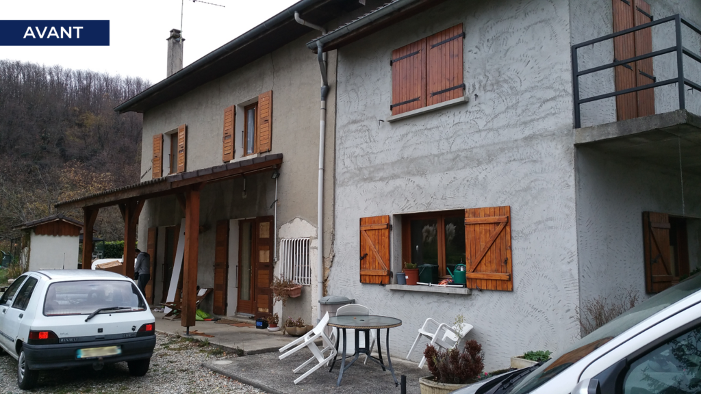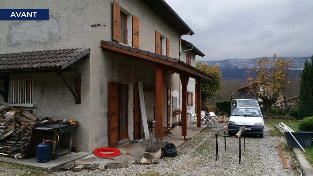 Nous avons réalisé ici une extension de 50m² d’une maison en pisé, en ajoutant une structure contemporaine de type murs agglos et toiture terrasse béton armé.